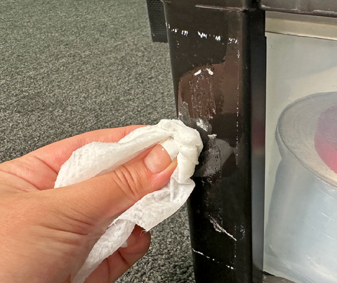 Plastic surfaces are easier to clean up because they are not usually chemically reactive with adhesive residues like metals can be—though there may be exceptions! If your surface is plastic, try rubbing alcohol! Pour an ounce into a spray bottle and spritz onto your surface until the residue starts coming off; then, use an old toothbrush or sponge to scrub away any remaining bits of glue.