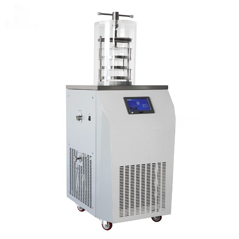 This freeze dryer is widely used in medicine, pharmacy, biology research, chemical industry and food production,etc. After the freeze drying process,a long term preservation is much easier. They can be restored to the original state and mantain their chemical and biological characteristics after being watered.This model is suitable for experiment in laboratory and small amount production ,and it can meet the regular freeze dying requirements of the most laboratories.