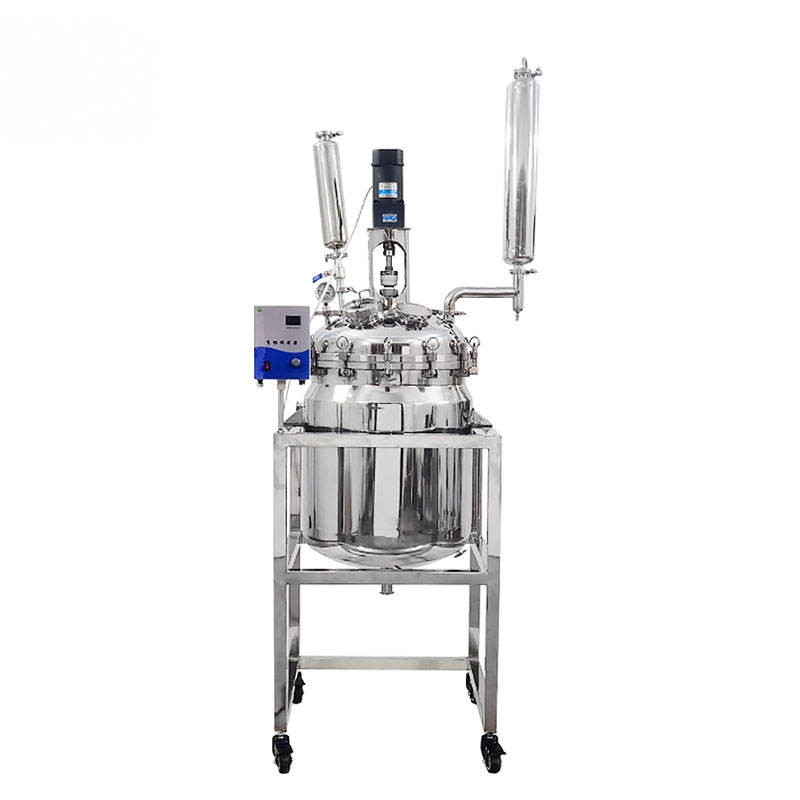 The Double layer stainless steel reactor is designed with double-layer stainless steel. The reaction solvent is placed in the inner layer for stirring reaction, and the interlayer can be connected to different cold and heat sources (refrigeration liquid, hot water or hot oil) for cyclic heating or cooling reaction. Under set constant temperature conditions, in a closed stainless steel reactor, the stirring reaction can be carried out under normal pressure or negative pressure according to the use requirements, and the reaction solution can be refluxed and distilled. It is an ideal choice for modern fine chemical plants, biopharmaceuticals and Ideal pilot and production equipment for the synthesis of new materials.