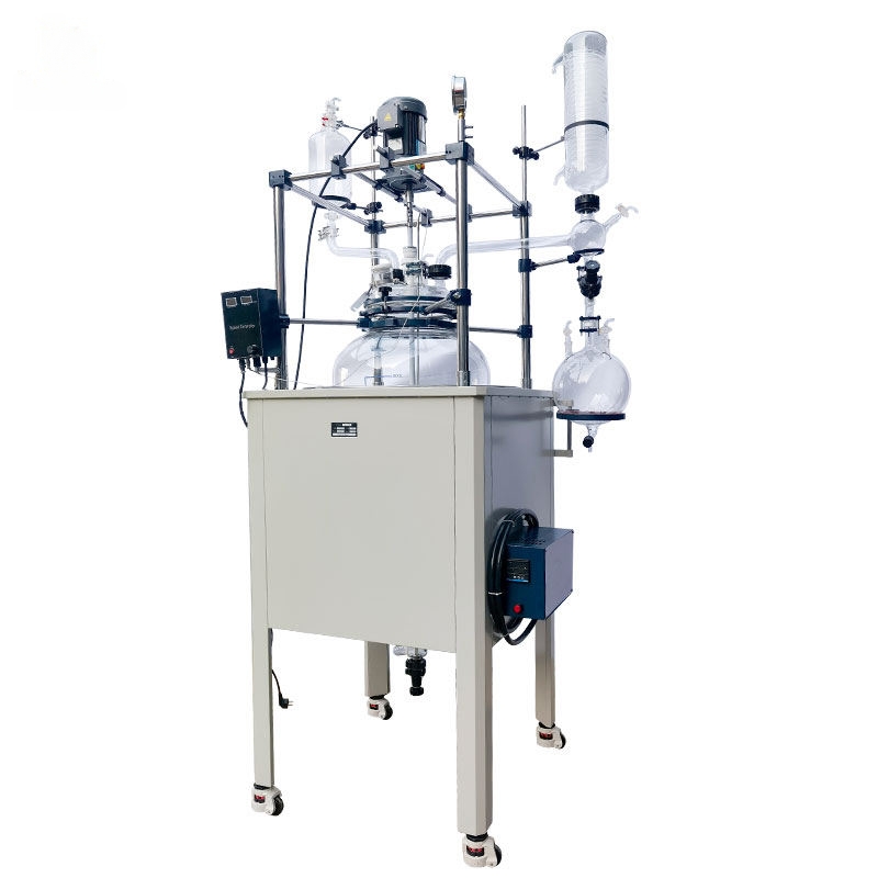Single glass reactor inner placed reaction solvent which can be stirred, single layer glass reaction kettle is heated by computer control oil bath or electric heating. At the same time, it can be worked at atmospheric pressure or vacuum state, to control the reaction solution reflux and distillation, it is the ideal equipment for modern synthesis chemical, biological pharmaceuticals and making new materials, used for preparation experiment and production equipment.