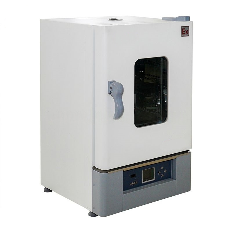 The shell of the explosion-proof blast drying oven is made of cold-rolled steel plate, the studio is made of mirror stainless steel plate, and silicon-aluminum fiber is used as insulation material. The interior of the working room is equipped with a grid-type stainless steel shelf, on which the test product can be placed for testing. The vertical double-air duct air jacket, the turbine centrifugal forced air supply, the temperature is uniform, and the structure is reasonable, and the appearance is beautiful and generous.