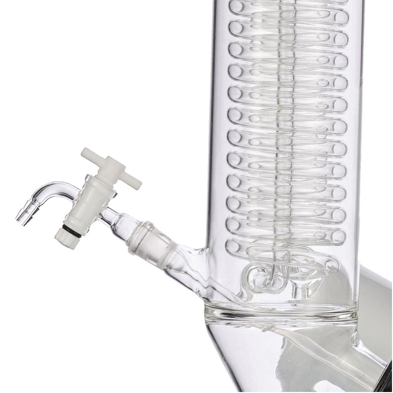 2. the condenser adopted two kinds of optional structure , one is double line convection principle, the other one is a single line with interlayer water, ice, and dry ice container. Used in organic solvent evaporation. And the vertical condenser saves space.