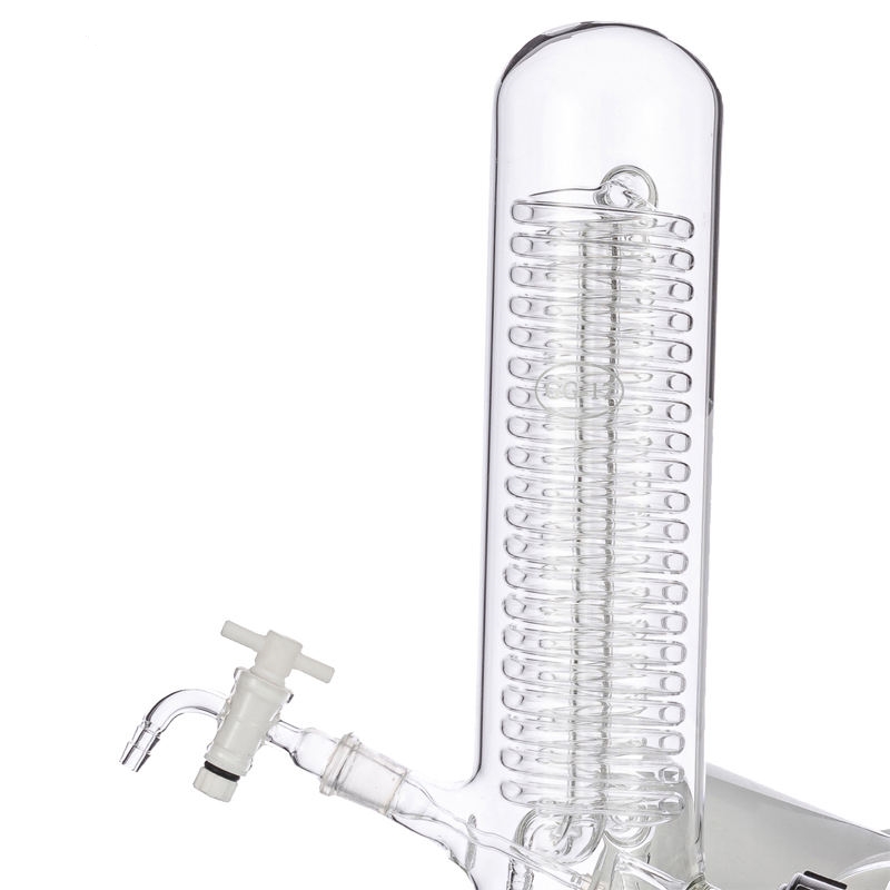 2. the condenser adopted two kinds of optional structure , one is double line convection principle, the other one is a single line with interlayer water, ice, and dry ice container. Used in organic solvent evaporation. And the vertical condenser saves space.