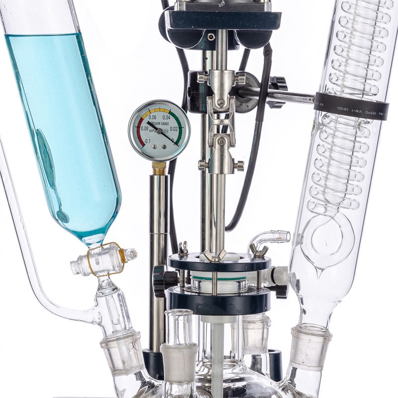 Single glass reactor inner placed reaction solvent which can be stirred, single layer glass reaction kettle is heated by computer control oil bath or electric heating. At the same time, it can be worked at atmospheric pressure or vacuum state, to control the reaction solution reflux and distillation, it is the ideal equipment for modern synthesis chemical, biological pharmaceuticals and making new materials, used for preparation experiment and production equipment.