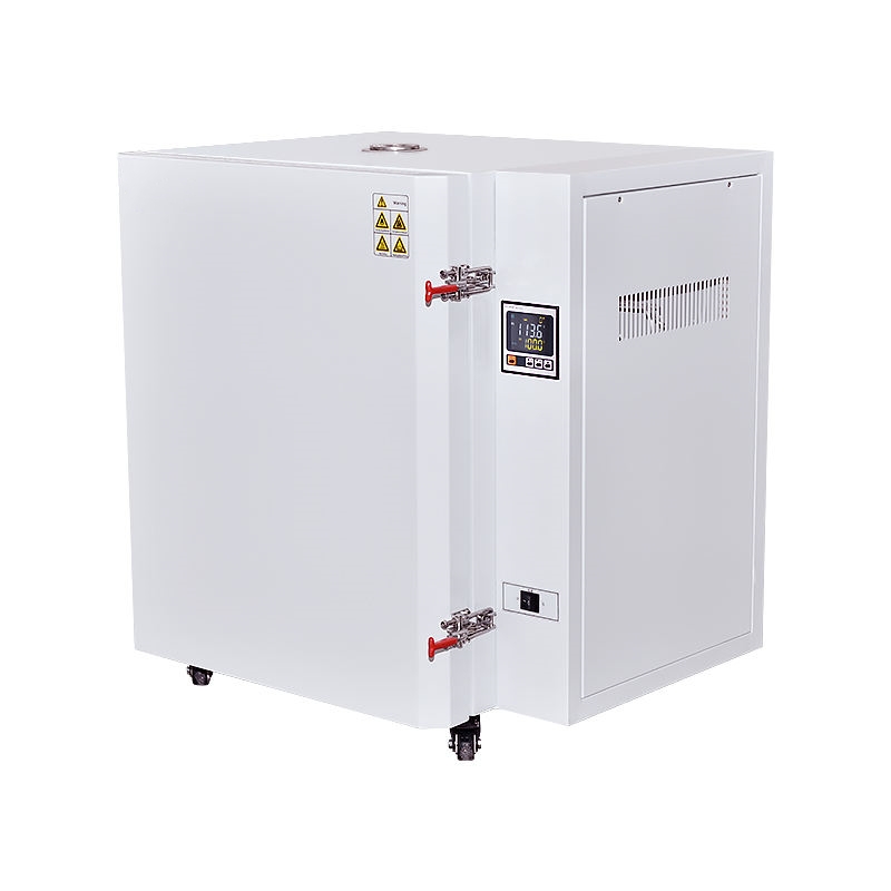 The drying box shell is made of high-quality steel plate with 304 hairline brushed stainless steel inside. It has good thermal insulation performance. A blower is installed on the top surface of the box chamber, which is equipped with an air duct in the box, so that the hot air in the box can be circulated regularly, thereby improving the temperature uniformity in the box.