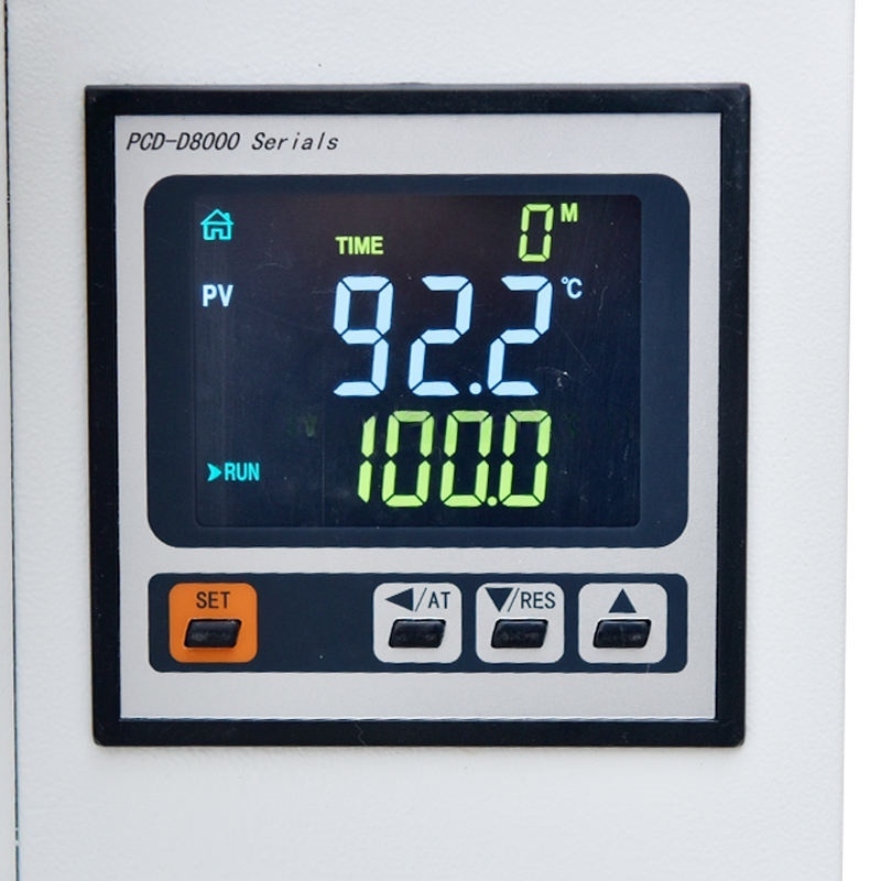 After the upper exhaust pipe of the box chamber is opened, the exhaust gas in the box can be discharged to the outside of the box. The operating system of this machine is set in the electrical box on the left side of the box, and the temperature setting and temperature control in the box are completed by the intelligent microcomputer integrated temperature control system.