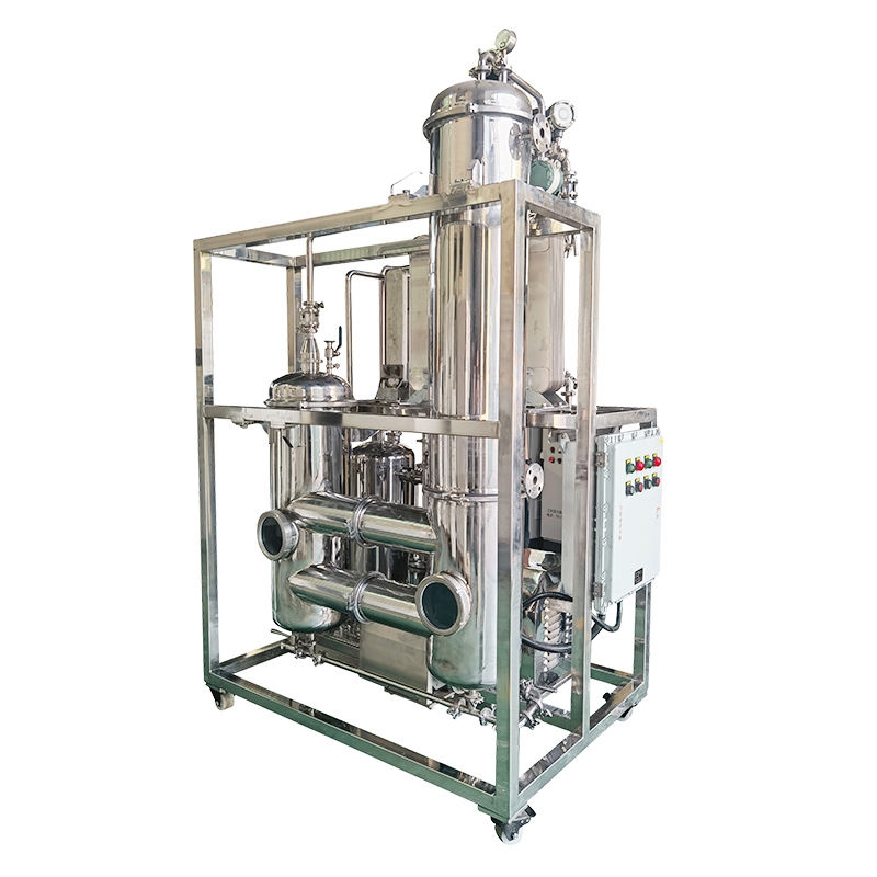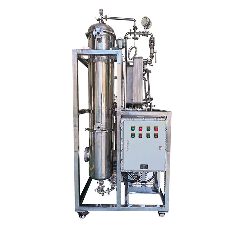 The whole solvent recovery system not only includes falling film evaporator, but also equips circulation heater (steam generator as an option), water cooling tower, circulation chiller, vacuum pump and all accessories.