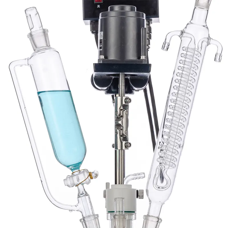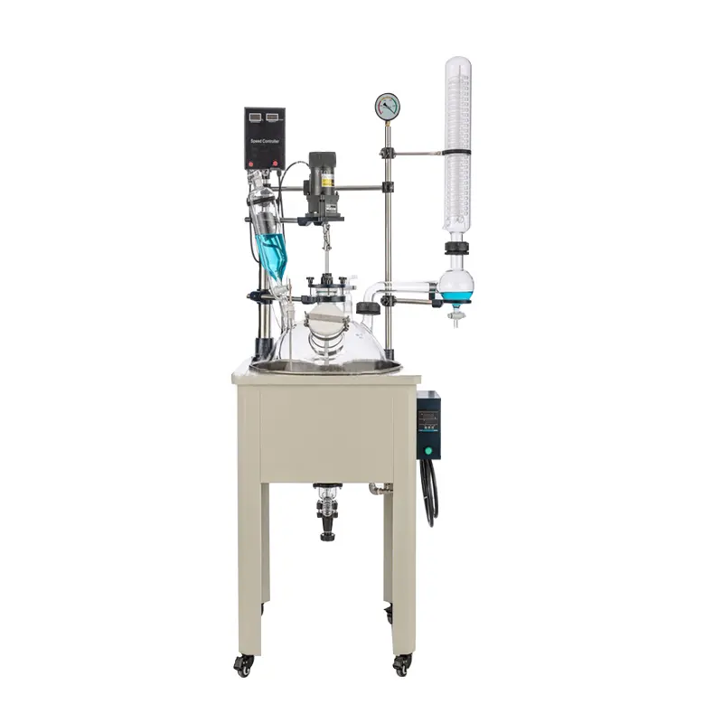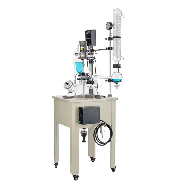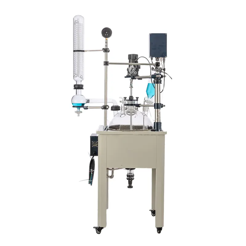 Single glass reactor inner placed reaction solvent which can be stirred, single layer glass reaction kettle is heated by computer control oil bath or electric heating. At the same time, it can be worked at atmospheric pressure or vacuum state, to control the reaction solution reflux and distillation, it is the ideal equipment for modern synthesis chemical, biological pharmaceuticals and making new materials, used for preparation experiment and production equipment.