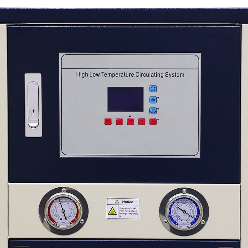 Recirculating Chiller Heater including: cooling function, heating function circulation system. It is composed of refrigeration unit, heating unit, circulation system and control system. Refrigeration part is mechanically refrigerated by a fully enclosed compressor, composed of plate heat exchangers, expansion valves, and pressure protectors to meet the cooling requirements