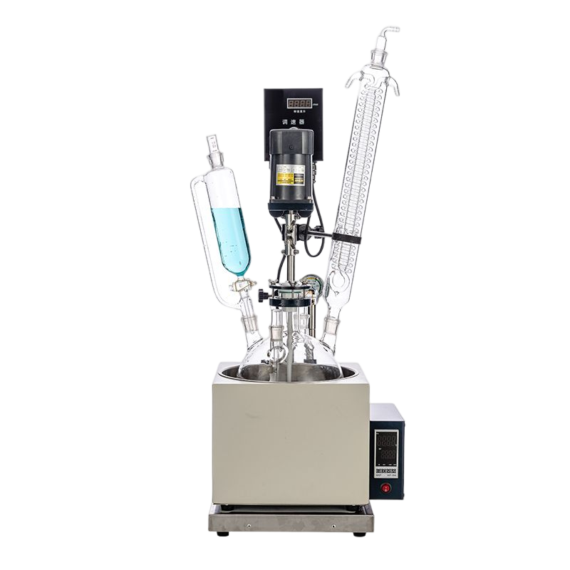 Single glass reactor inner placed reaction solvent which can be stirred, single layer glass reaction kettle is heated by computer control oil bath or electric heating. At the same time, it can be worked at atmospheric pressure or vacuum state, to control the reaction solution reflux and distillation, it is the ideal equipment for modern synthesis chemical, biological pharmaceuticals and making new materials, used for preparation experiment and production equipment.
