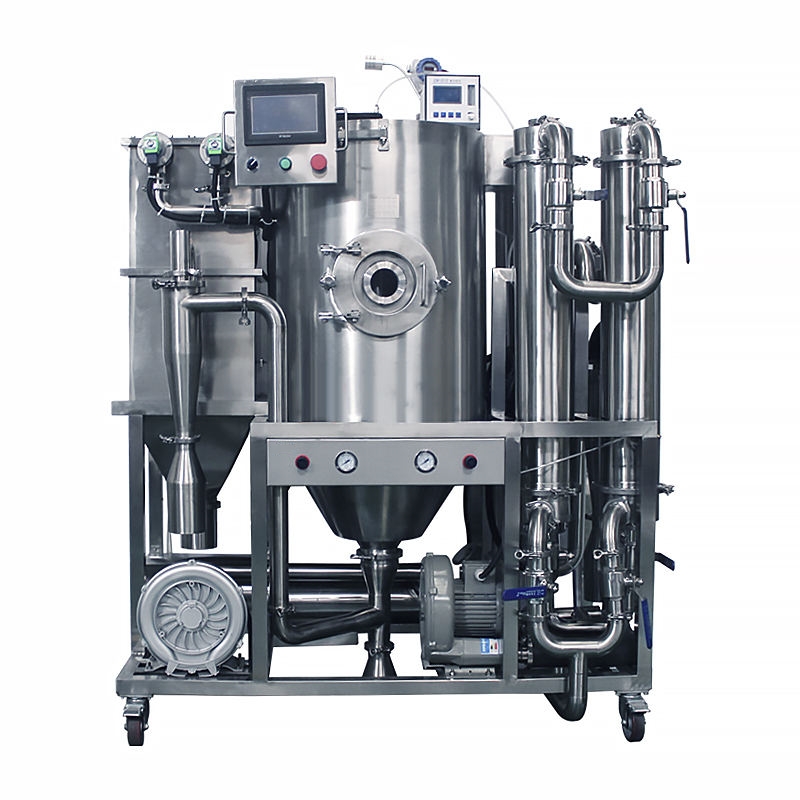 Equipment function and principle introduction This device is especially for organic solvents, and uses the inert gas medium formed by circulating nitrogen to replace the usual air medium for spray drying. In addition to recovering products, organic solvents can also be recovered. According to the relevant characteristics of organic solvents, a set of closed cycle spraying system is specially designed. The new equipment developed by our company does not necessarily need to reach the boiling point for evaporation, as long as the alcohol in the external air does not reach saturation.