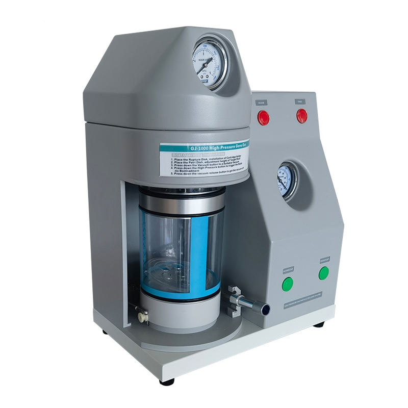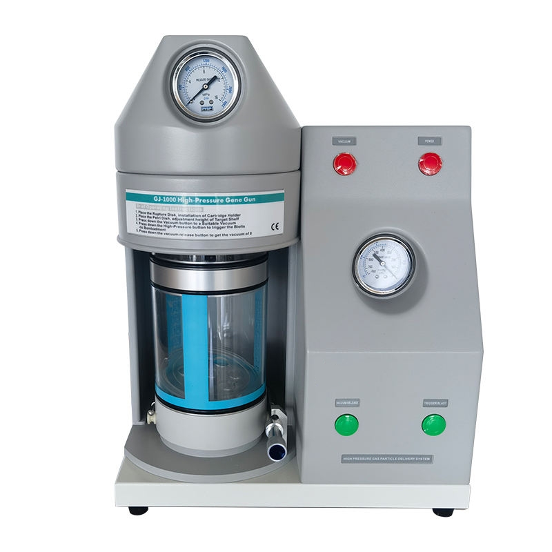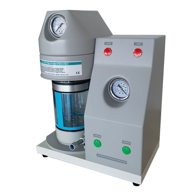 The high-pressure gas gene gun uses high-pressure gas-powered particle bombardment technology to introduce tungsten or gold particles of about 0.8-1.5 μm in size, encapsulated with nucleic acids, into the cells to achieve transfection effects. Transfection by gene gun is not only fast, easy, safe and efficient, but also applicable to both transient and stable transfection methods. The instrument can be widely used for in situ, in vitro, in vivo and ex vivo biologic projectile transformation of samples.