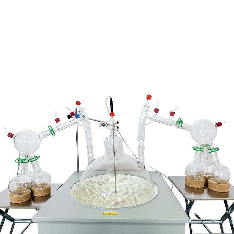 Short path distillation is a new distillation technique, which is usually carried out under reduced pressure.This technique is typically used for compounds that are unstable or have small amounts of purification at high temperatures.The advantage is that the heating temperature (under reduced pressure) can be much lower than the boiling point of the liquid at standard pressure, and the distillate only needs to travel a short distance before condensing.The shorter path ensures that very little compound is lost on the side of the device.