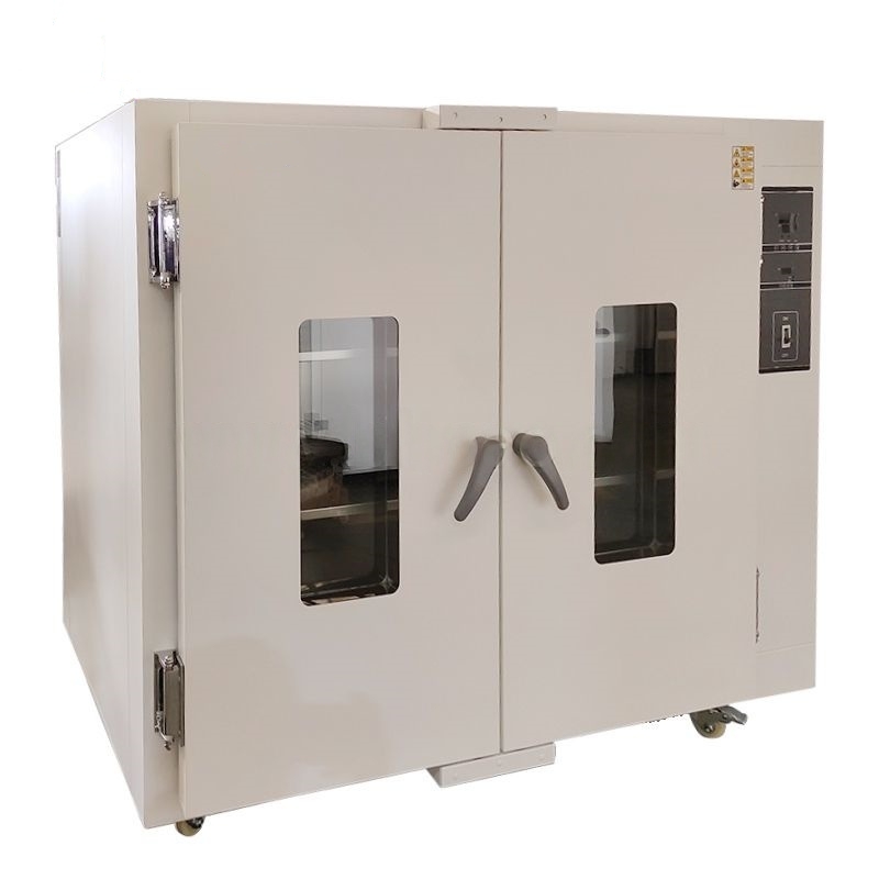 The industrial oven uses the connection between the digital display instrument and the temperature sensor to control the temperature of the working room, and uses the hot air circulation to dry the material. The hot air circulation system is divided into horizontal air supply and vertical air supply, all of which have been professionally designed. The motor runs to drive the air supply wind wheel, so that the blown air is blown on the electric heating tube to form hot air, and the hot air is sent from the air duct to the working room of the industrial oven, and the used hot air is sucked into the air duct again to become the wind source for recirculation heating, greatly improving temperature uniformity. If the box door is opened and closed during use, the air circulation system can be used to quickly restore the temperature value of the operating state.
