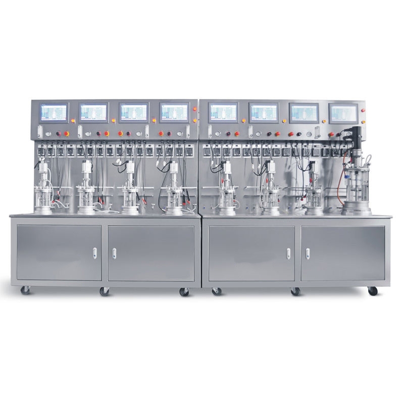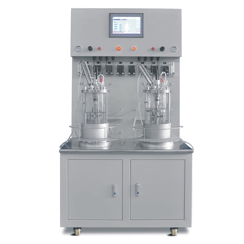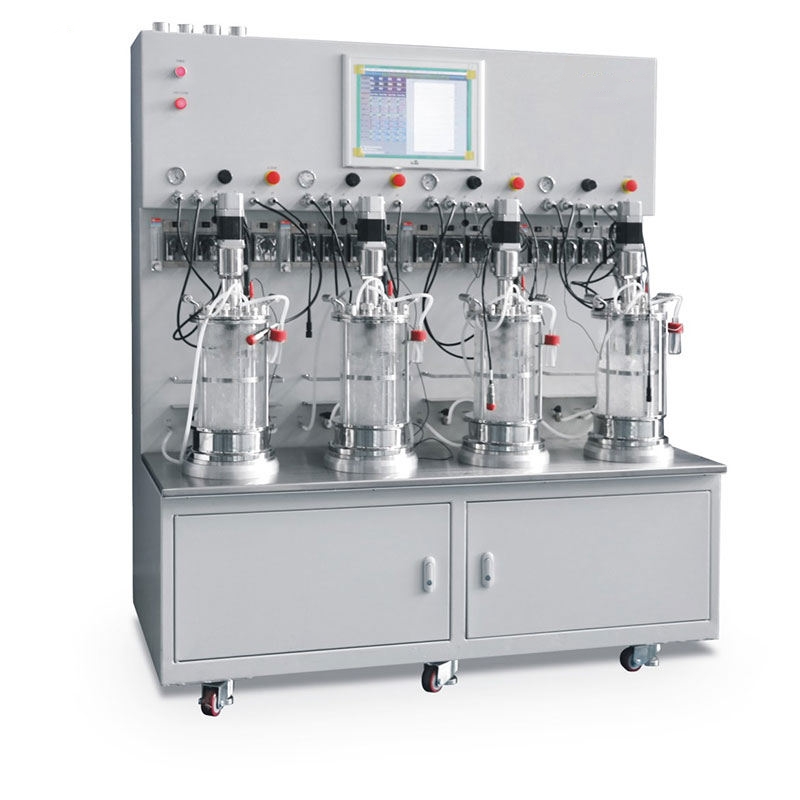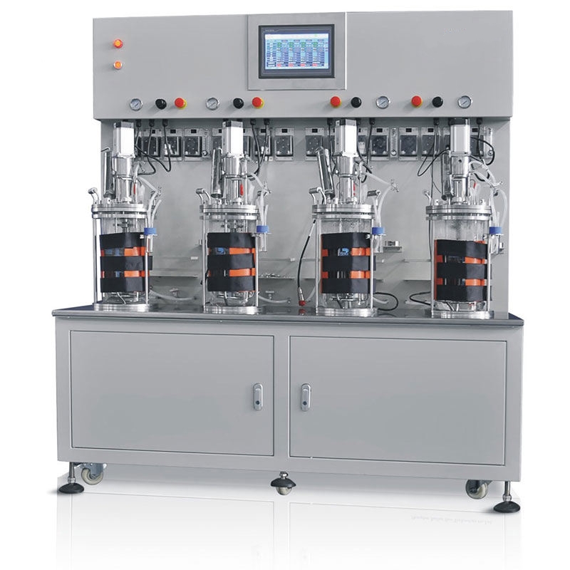 Introducing the Off-site Sterilization Six to Twelve Conjoined Glass Bioreactor, a cutting-edge laboratory fermentation equipment with automatic control, ideal for diverse purposes including batch, batch feeding, and animal cell culture. Its color touchscreen display streamlines user interaction. This multiple glass bioreactor boasts four peristaltic pumps per tank, supplying acid, alkali, defoamer, and culture medium. The controller monitors pH, DO, temperature, and speed, while its compact design accommodates the integration of diverse components. The direct coupling mechanical stirring method ensures stability. Perfect for parallel orthogonal experiments, it optimizes process research and reduces valuable research time.