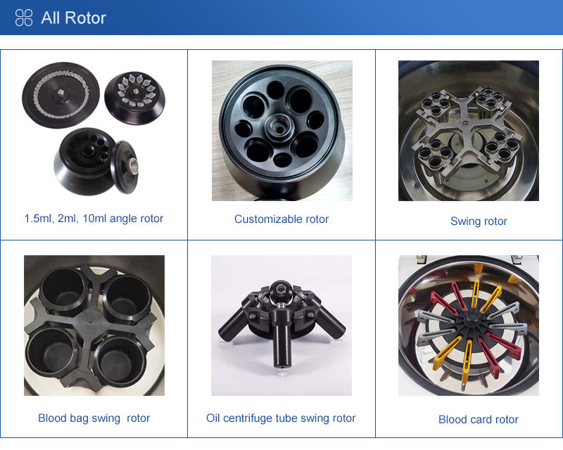 | Rotors type | Max. Speed(r/min) | Volume | Max. RCF |