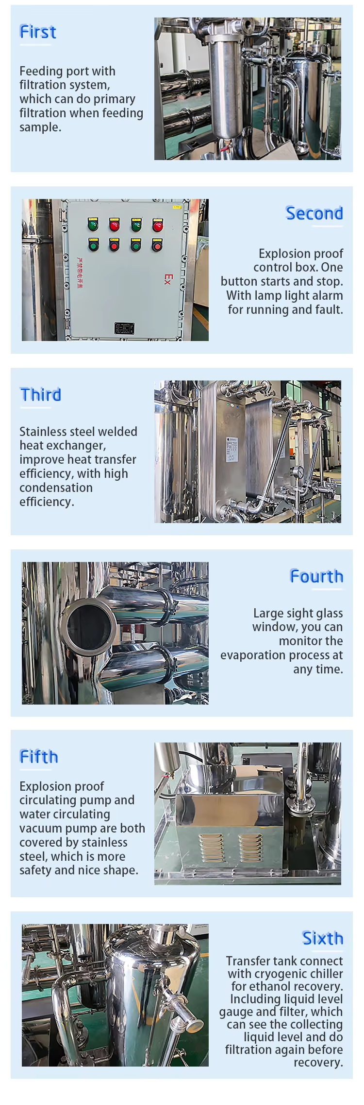 Lab Scale Falling Film Evaporator For Ethanol Recovery detail - Explosion proof circulating pump and water circulating vacuum pump are both covered by stainless steel, which is more safety and nice shape.
