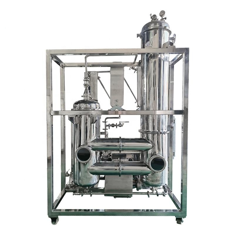 The OQT-250 falling film evaporator include body,thermal conductivity oil furnace, alcohol tank and accessories. The FFE falling film evaporator is used in CBD extraction to recover the ethanol.It is suitable for evaporation and concentration of all kinds of materials, especially for materials that are not easy to scale. Easy to evaporate or have strong heat sensitivity. Our FFE falling film evaporator maintains a high evaporation rate,which significantly increases the throughput of crude oil production. The Alcohol tank is made of S304/S316 Stainless steel,which has good corrosion resistance and meets the requirements of GMP.
