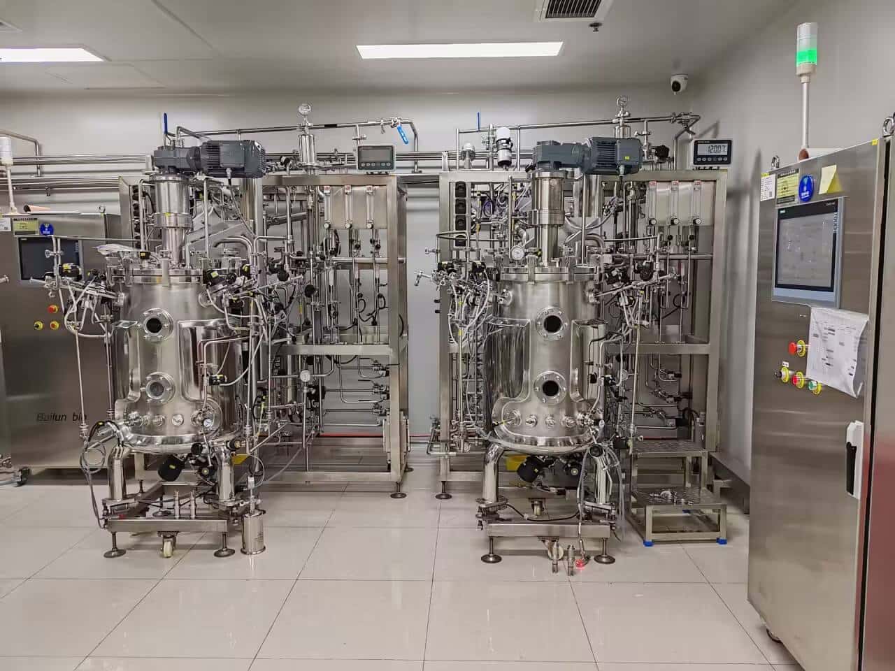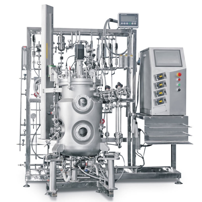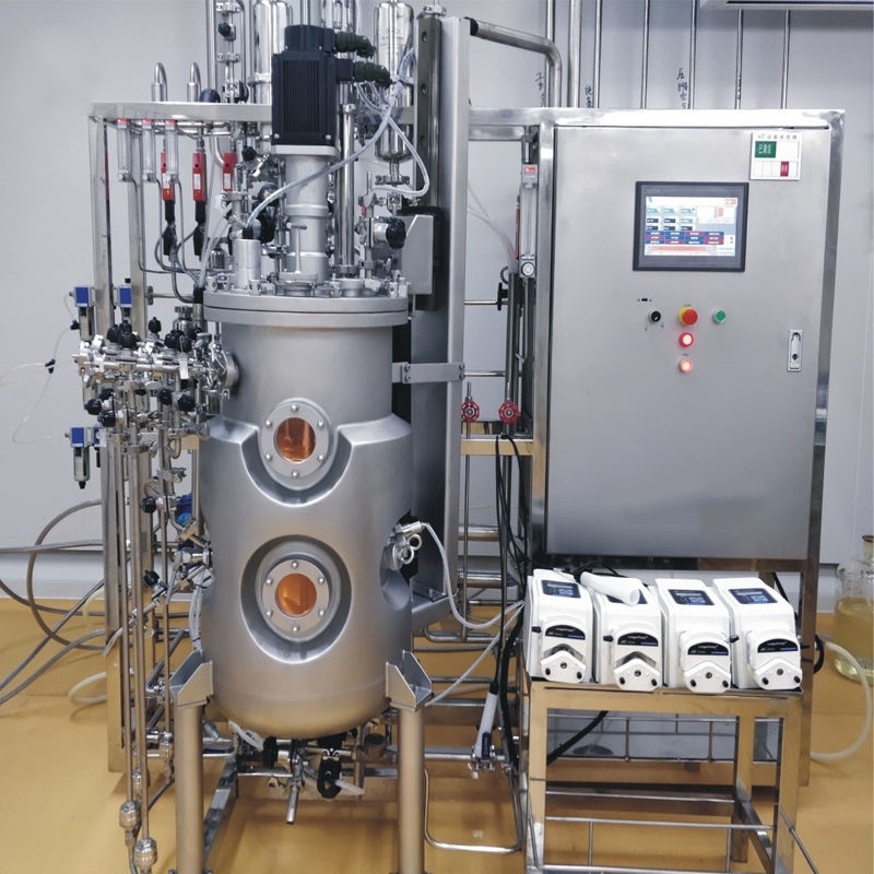 Stainless steel shaft coupling drive bioreactors fermenters using a strong magnetic upper magnetic stirring system, main body is made of all stainless steel 316L tank with no dead corners in the tank, fully sealed, zero leakage, and pollution-free, changing the dynamic seal into a static seal, completely solving the problem of bacterial contamination in the cultivation of biological product tanks, suitable for long cycle and non-dominant bacteria.