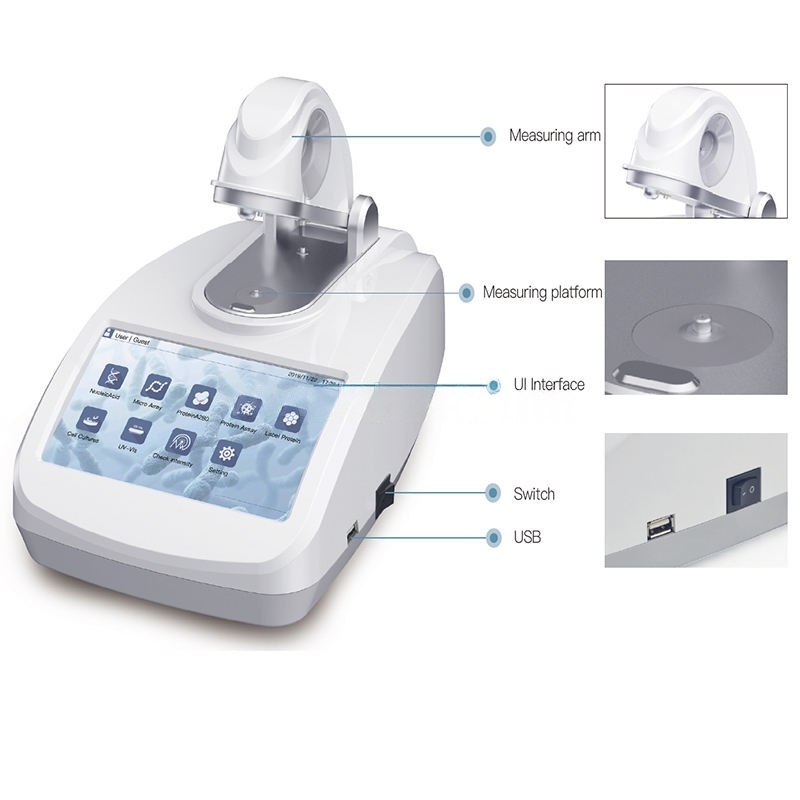 Ultra-micro ultraviolet-visible spectrophotometer is to use spectrophotometry to quantitatively.Ultra-micro ultraviolet-visible spectrophotometer can be used to detect nucleic acids, micronucleic acid arrays, pure protein detection, labeled protein detection, protein quantitative detection, microbial cell culture detection and conventional full wavelength scanning, etc.